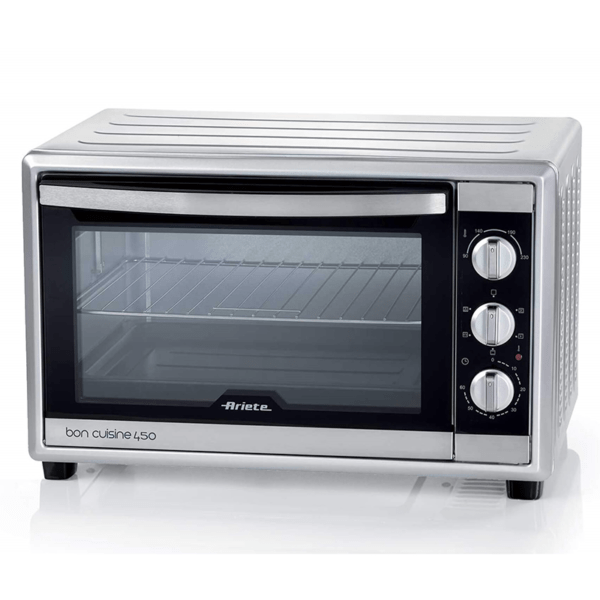 فرن كهربائي ARIETE 986/11 بسعة 45 لتر وقوة 1800 وات مناسب للطهي اليومي والتحضير الكامل للأطعمة. يتميز بعدة وظائف 6 أوضاع طهي تشمل التسخين العادي والتهوية، بالإضافة إلى شواية الدجاج (روتيزيري) للطهي الكامل. يحتوي على مؤقت حتى 60 دقيقة ودرجة حرارة قابلة للضبط حتى 230 °C، مما يمنحك تحكمًا دقيقًا في الطهي. مزود بـ إضاءة داخلية لمراقبة الطعام أثناء الطهي، وباب زجاجي مزدوج يحافظ على الحرارة ويمنع فقدانها. يأتي مع ملحقات مثل الشواية، صينية للتقطير، وعاء لجمع الفتات لتسهيل التنظيف.