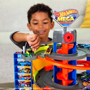 مرآب GTT95 من هوت ويلز يُحوّل التخزين إلى مغامرة! ارفعي السيارة بالمصعد الحلزوني، ثم اختاري بين إطلاقها نحو المسارات أو عرضها في الطابق المناسب. تصميمه العمودي يُوفّر مساحة كبيرة ويُشجّع الأطفال على اللعب القصصي وتنظيم مجموعاتهم بطريقة ممتعة.