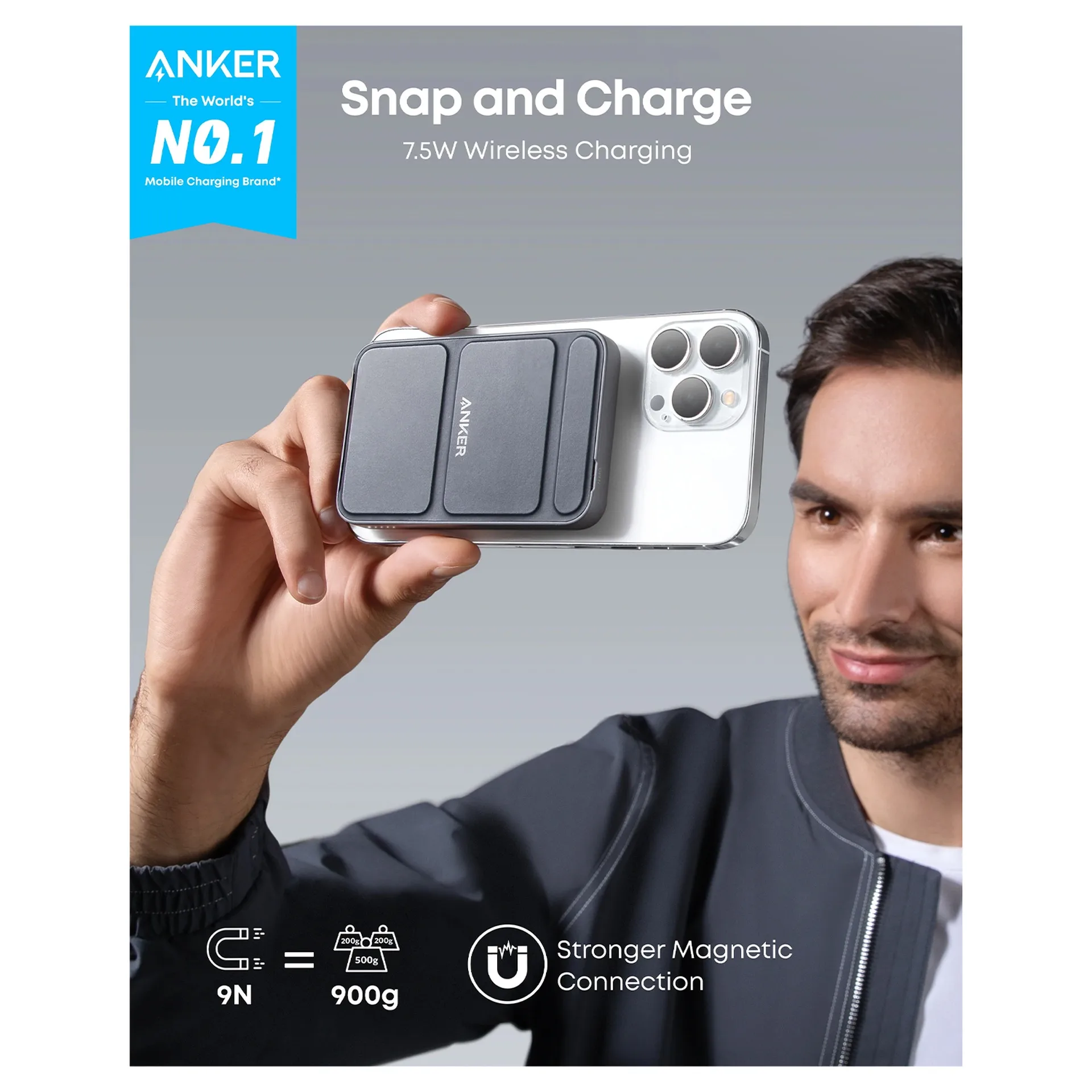 The Anker Magnetic Battery Charger provides an easy wireless charging experience thanks to the magnetic design that sticks directly to your phone, making it ideal for everyday use on the go. It features a slim and lightweight size with a built-in stand for greater comfort while watching content or working, as well as a reliable performance that ensures stable and safe charging for your compatible devices.