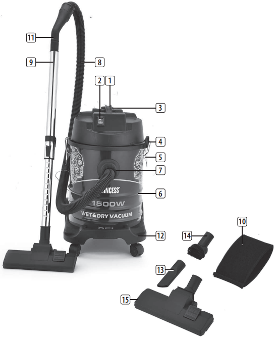 Princess Vacuum Cleaner Barrel Vacuum Cleaner 25L 1500W