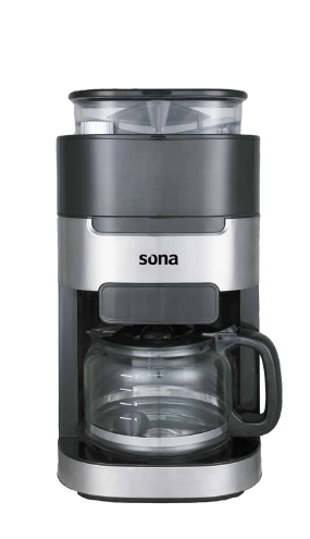 تقدم هذه الماكينة من سونا أداءً مزدوجاً بفضل دمجها لمطحنة داخلية، ما يتيح تحضير القهوة الطازجة بسعة 1.5 لتر وقدرة 1050 واط. تجمع بين التصميم الأنيق والوظائف الذكية لعشاق الطعم الأصيل.
