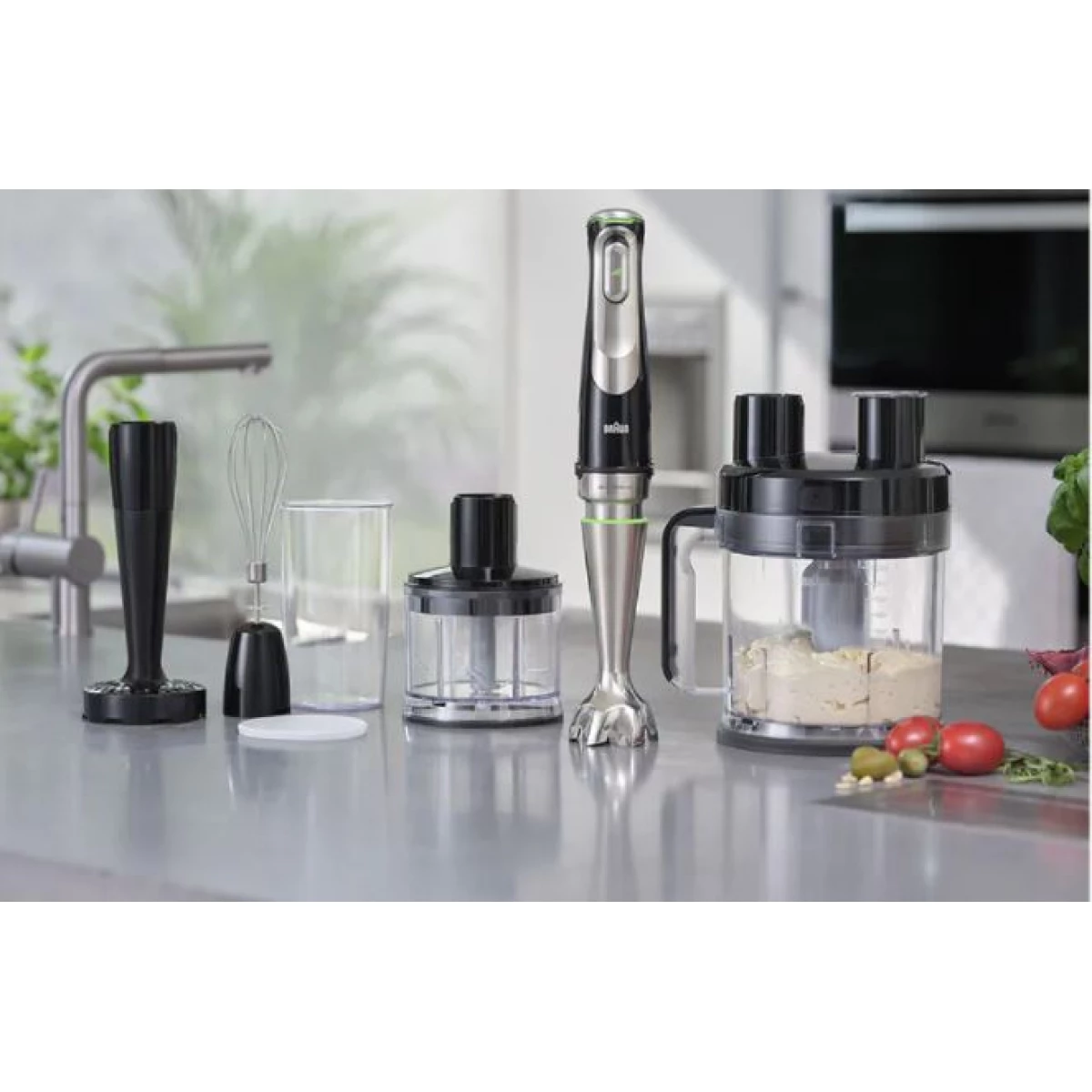يُعد خلاط يد من براون خلاطًا يدويًا متطورًا متعدد الوظائف، يجمع بين القوة، الدقة، وسهولة الاستخدام لتحضير الطعام بكل مرونة في المطبخ. يتميز بمحرك قوي يصل إلى 1000 واط يقدم أداءً ممتازًا مع المكونات الصعبة، وتقنيات متقدمة مثل ActiveBlade لنتائج أنعم وأسرع، وتقنية سمارت سبيد للتحكم البديهي في السرعة بضغطة زر واحدة، بالإضافة إلى نظام سبلاش كونترول الذي يقلل من تناثر الطعام أثناء الخلط. كما تأتي المجموعة مع عدة ملحقات تتيح الفرم، الخفق، الهريس، التقطيع والمعالجة الشاملة.