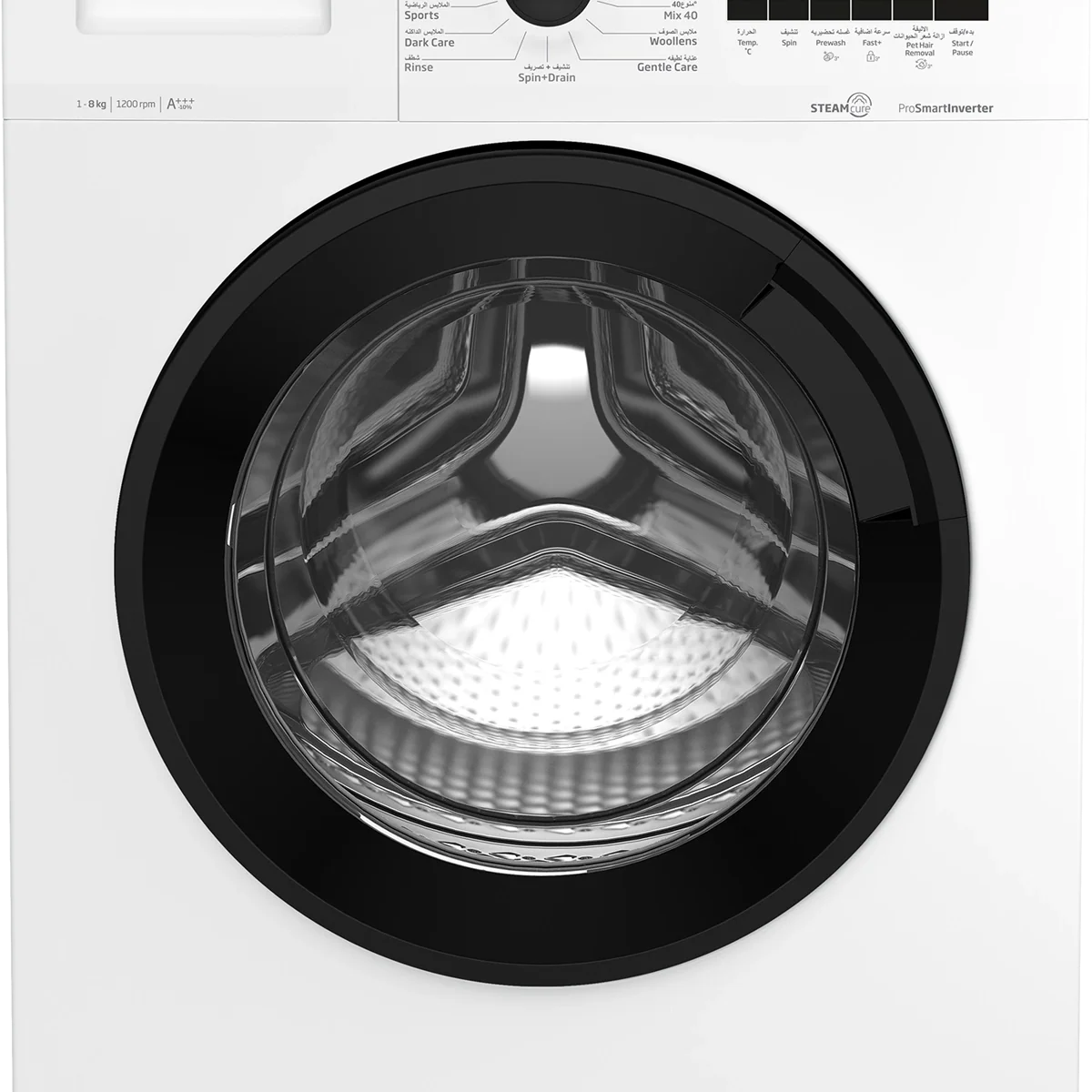 تقدّم غسالة ملابس بتصميم عملي وفعّال يناسب الاستخدام اليومي للأسر الصغيرة والمتوسطة. بسعة 8 كجم، تتيح لك غسل كميات كبيرة من الملابس في دورة واحدة، مع سرعة دوران 1200 دورة/دقيقة للحصول على ملابس أنظف وأقل رطوبة بعد الغسيل، ما يسهّل الكي والتجفيف اللاحق. تعتمد الغسالة على محرك برو سمارت انفرتر الحديث الذي يوفر كفاءة في استهلاك الطاقة وصوتًا أقل أثناء التشغيل، مع 15 برنامج غسيل تشمل خيارات لأقمشة مختلفة وحالات خاصة مثل ملابس الرياضة أو الحساسة.