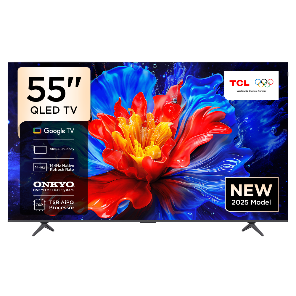 TCL TV 55P8K QLED 144HZ NATIVE REFRESH RATE ONKYO 2.1 HI-FI SYSTEM HVA PANEL 350 NITS