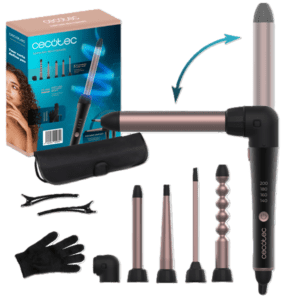 سيكوتيك Cecotec Bamba SurfCare MultiWaves، جهاز تجعيد شعر 5 في 1 مع 5 رؤوس قابلة للتبديل، طلاء سيراميك، حرارة قابلة للتعديل 140–200 ºم، رأس بزاوية 90º لراحة أكبر، قفاز مقاوم للحرارة، حقيبة ومشابك، قدرة 80 واط، سلك دوّار 360º