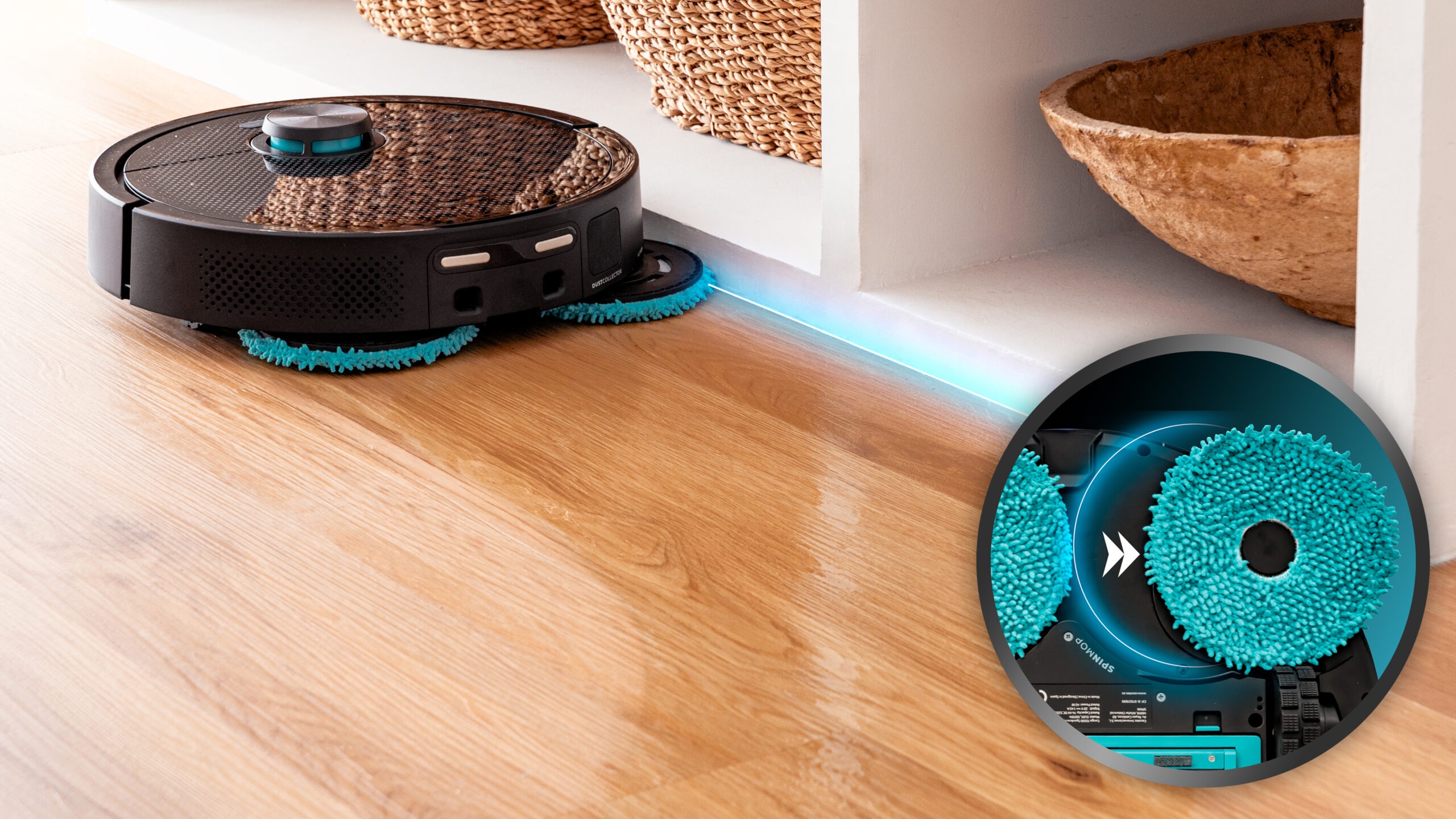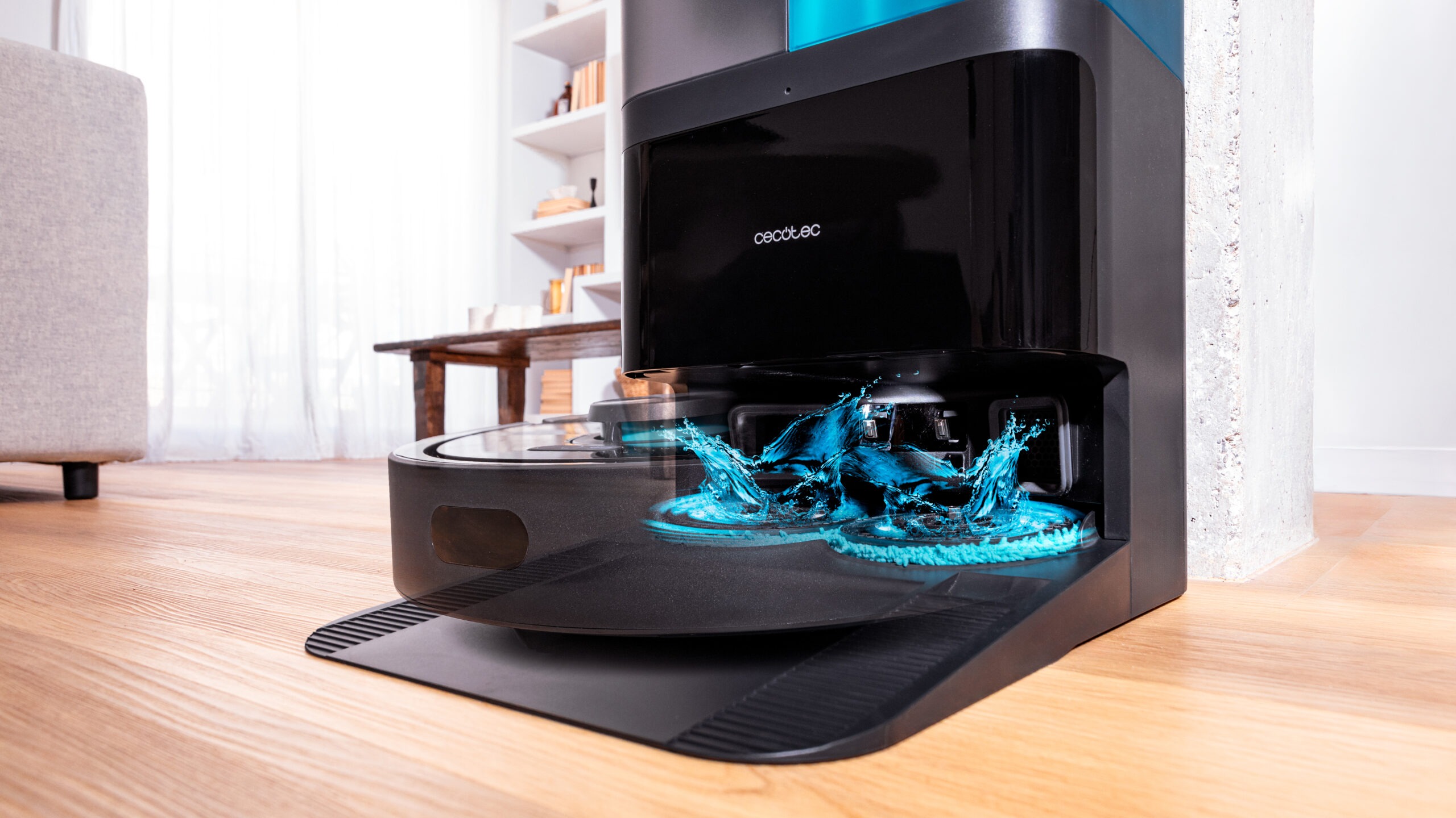 سيكوتك Conga 15090 SpinArm Home&Wash روبوت تنظيف بقدرة شفط 8000 باسكال، ملاحـة ليزر، ممسحات قابلة للامتداد والرفع، قاعدة Home&Wash للتفريغ والتعبئة والغسل والتجفيف، فرشاة سيليكون وبطارية 5200 mAh مع تحكم شامل عبر التطبيق.