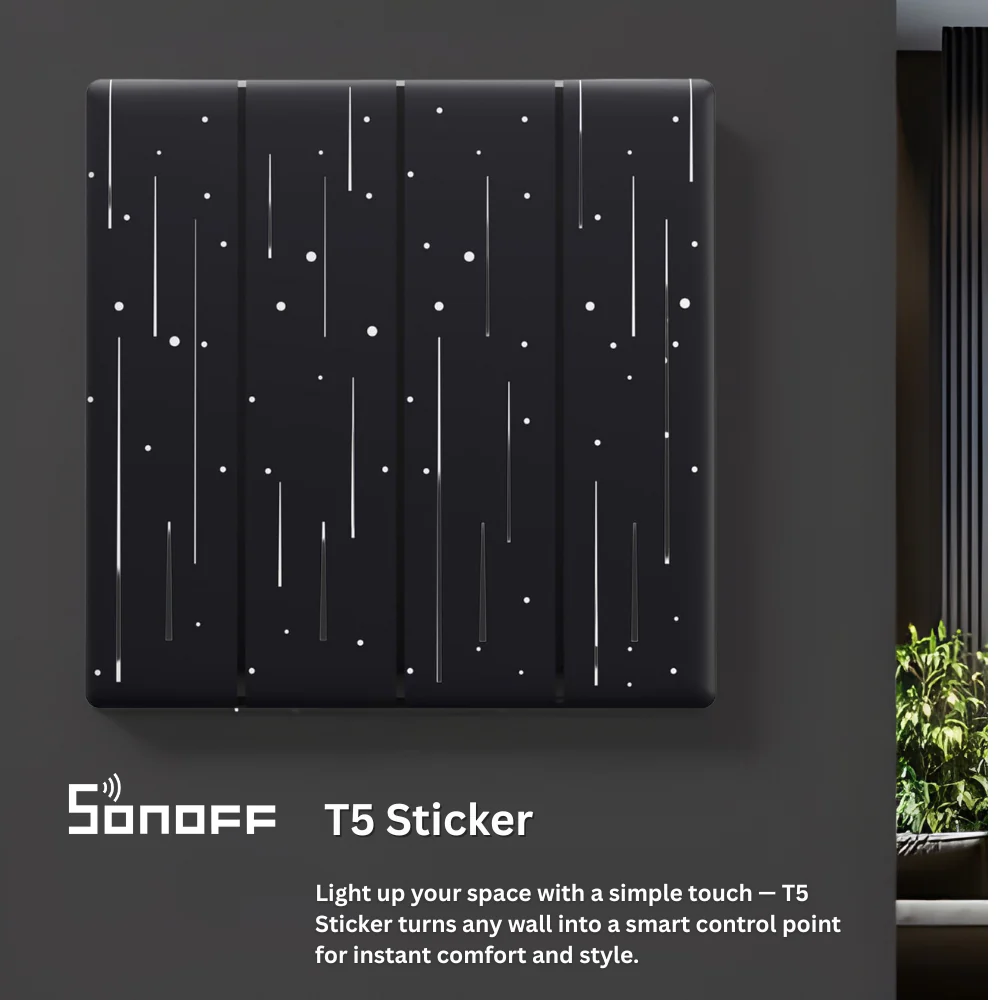 يُعتبر T5 Sticker حلاً عمليًا وذكيًا للتحكم بالأجهزة والإضاءة بسهولة تامة دون الحاجة إلى أسلاك أو تعقيدات. بفضل تصميمه اللاسلكي واللاصق، يمكنك تثبيته في أي مكان واستخدامه لتفعيل المشاهد الذكية أو تشغيل/إيقاف الأجهزة بضغطة واحدة. يعمل بتناغم مع أنظمة المنزل الذكي مثل منتجات سونوف ، ليمنحك تجربة تحكم مرنة وسريعة في حياتك اليومية.