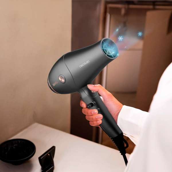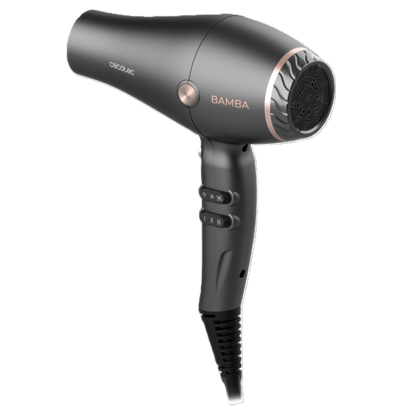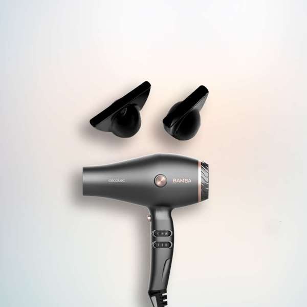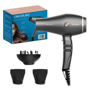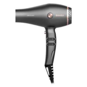 سيكوتيك بامبا أيوني كير هارموني – مجفف شعر 2600 واط، محرك AC، تقنية الأيونات، فوهتان مركزيتان، ناشر، سرعتان، 3 مستويات حرارة، وظيفة الهواء البارد، لمسة نهائية احترافية – أسود