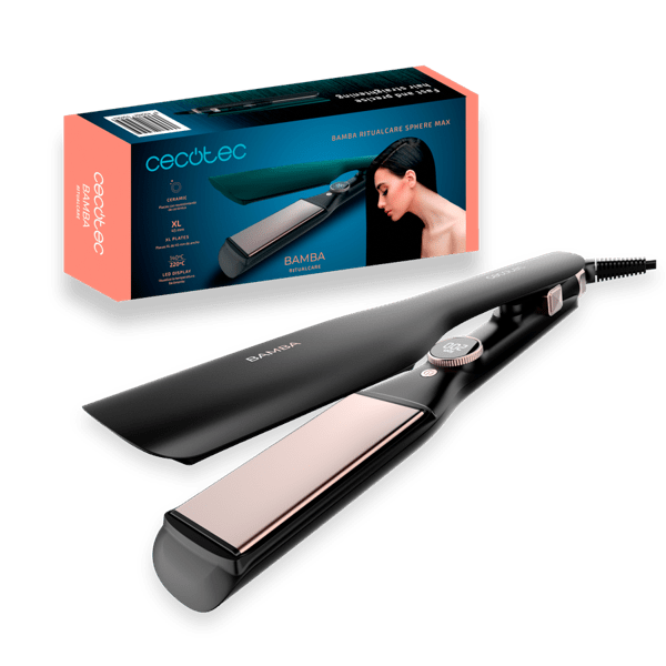 سيكوتيك بامبا ريتوال كير سفير ماكس، مكواة شعر XL بصفائح عريضة 45 مم مطلية بالسيراميك، شاشة LED، حرارة قابلة للتعديل 140–220°، تصميم متعدد الاستخدام 2×1، صفائح عائمة ثلاثية الأبعاد، إيقاف تلقائي، طرف بارد، 82 واط