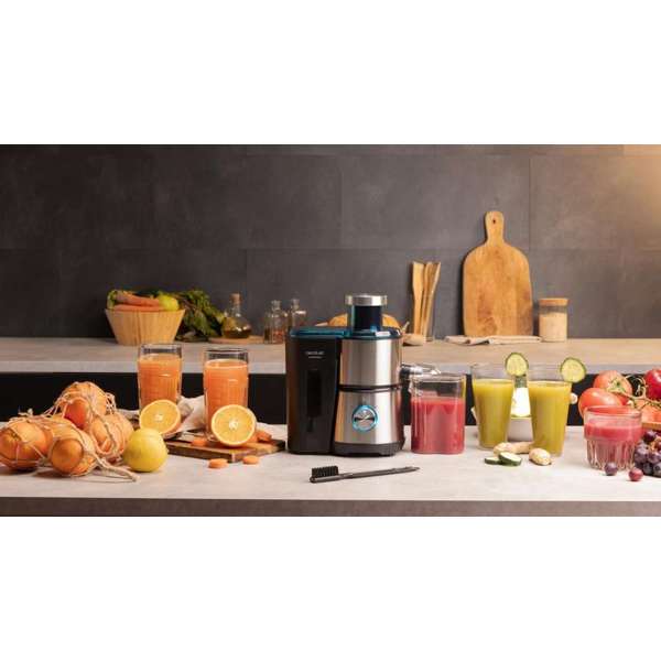 سيكوتيك جوس آند فريش 400 تايتان بلاك XS عصارة، 400 واط، 22,000 دورة/دقيقة، قرص مطلي بالتيتانيوم الأسود، سرعتان، فوهة تغذية XL مقاس 55 مم، خزان لب 1 لتر، إبريق عصير 350 مل، نظام مانع للتقطير، آمنة للغسيل في غسالة الصحون وخالية من الـ BPA