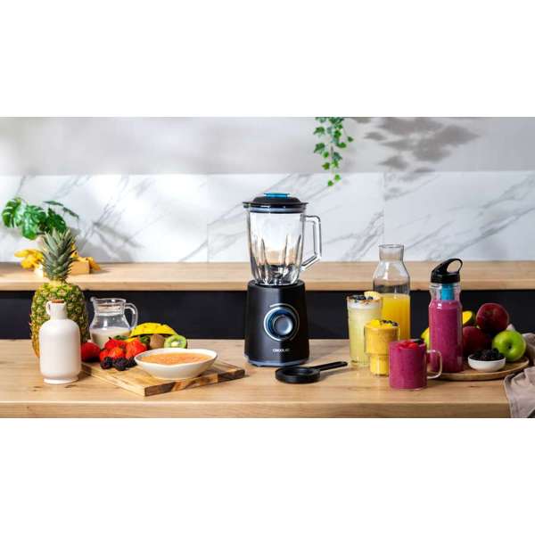 سيكوتيك باور بلاك تيتانيوم 2000 ماكس ميكس آند جو، خلاط إبريق بقوة 2000 واط، إبريق زجاجي مقاوم للحرارة بسعة 1.5 لتر، 6 شفرات مطلية بالتيتانيوم الأسود، 5 سرعات + تيربو، يسحق الثلج، يشمل كوب رياضي ومبرد