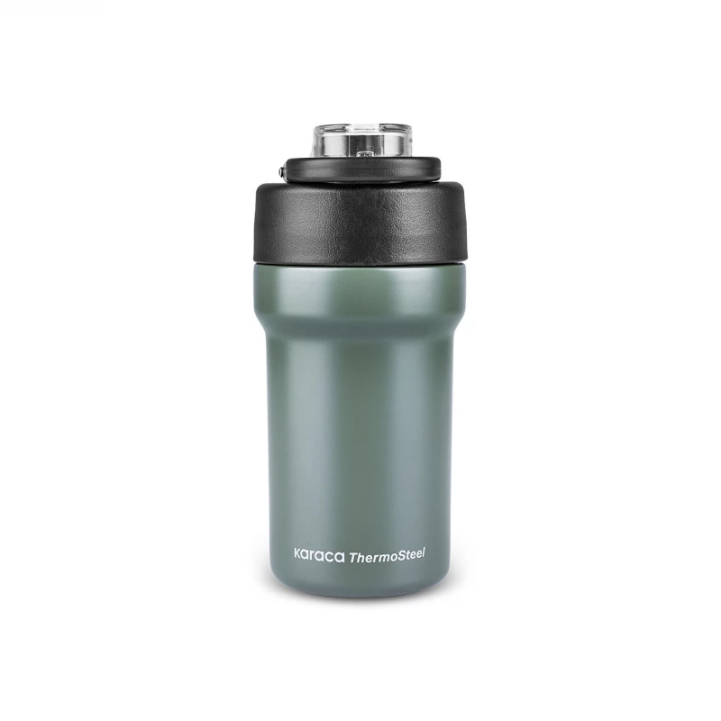 يوفر ترمس كاراجا من سلسلة 2-في-1 تجربة عملية لعشاق الرحلات والتخييم. يأتي بتصميم متين ولون كاكي مميز مع هيكل من الفولاذ المقاوم للصدأ يساعد على الحفاظ على حرارة أو برودة المشروبات لفترات طويلة، مما يجعله مثالياً للأنشطة الخارجية والسفر.