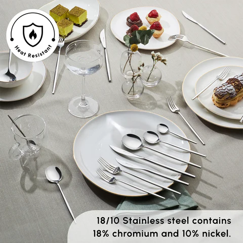 يقدم طقم كاراجاالمكوّن من 84 قطعة مزيجًا مثاليًا بين الفخامة والمتانة، ليمنح مائدتك مظهرًا أنيقًا يناسب الاستخدام اليومي والمناسبات الخاصة. صُنع من فولاذ 316+ المقاوم للصدأ المعروف بقوته العالية ومقاومته للتآكل والخدوش، مع تصميم عصري ولمعة راقية تضيف لمسة مميزة لكل وجبة.