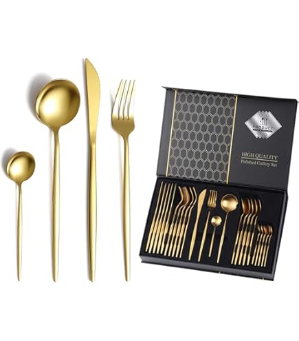 طقم أدوات مائدة فاخر 84 قطعة بتصميم أنيق مع علبة فاخرة