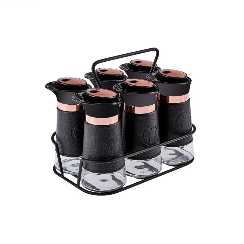 يقدّم طقم كاراجا حلاً عمليًا لتنظيم البهارات داخل المطبخ بأسلوب عصري أنيق. يتكوّن الطقم من مرطبانات زجاجية مربعة باللون الأسود مع تفاصيل مستوحاة من الجلد، ما يمنحه مظهرًا فاخرًا يناسب المطابخ الحديثة. كما تساعد الأغطية المحكمة على الحفاظ على نكهة البهارات طازجة لفترة أطول مع سهولة الاستخدام والتنظيف اليومي.
