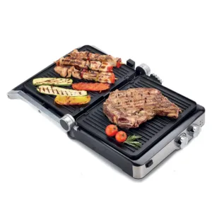 - السطح: سطح شواية واسع مناسب للحوم، الدجاج، الأسماك، والخضار