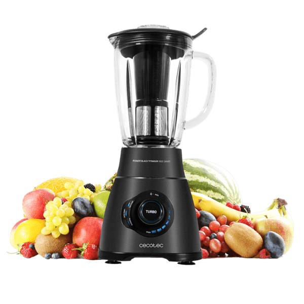 خلاط سيكوتيك Cecotec باور بلاك تيتانيوم 2500MAX سمارت، 2500 واط، إبريق زجاجي مقاوم للحرارة بسعة 1.8 لتر، 6 شفرات مطلية بالتيتانيوم، تصميم ستانلس ستيل، 5 سرعات + تيربو، فلتر للعصائر، آمن للغسيل في غسالة الصحون
