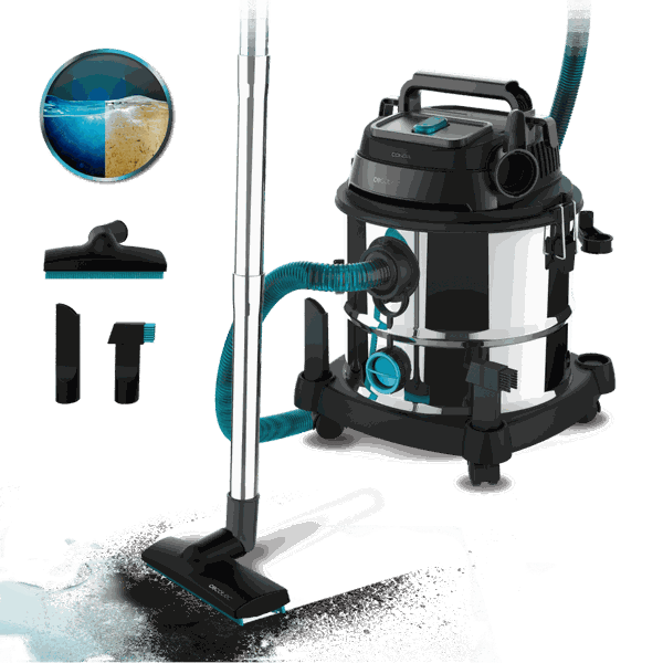 سيكوتيك كونجا روكستار ويت & دراي ستيل ماكس – مكنسة كهربائية معدنية للسوائل والأتربة، قوة 1400W، خزان ستانلس ستيل 20L، وظيفة النفخ، فلترة مزدوجة، بدون كيس، مدى تنظيف 7m، تصميم فائق المتانة