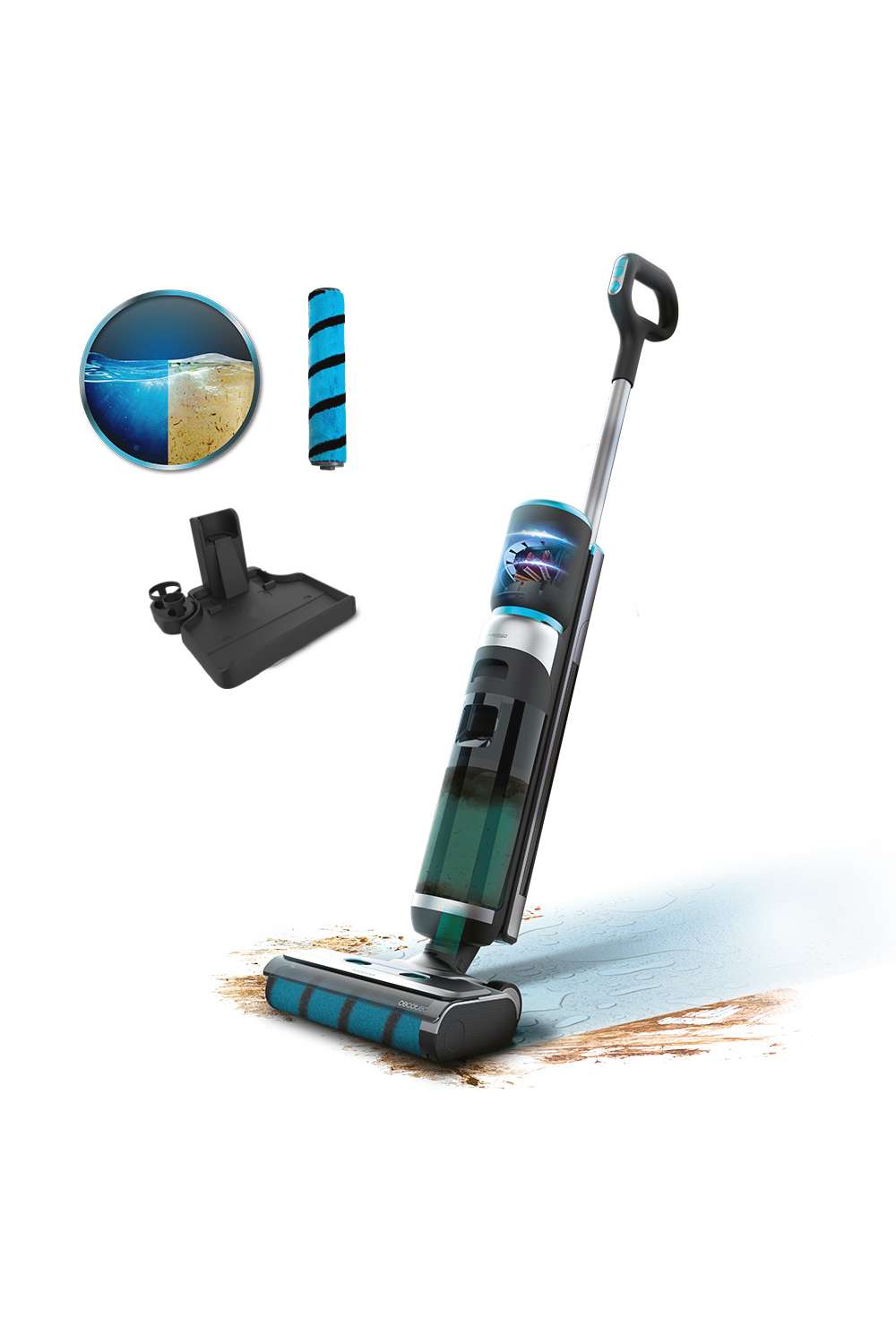 سيكوتك FreeGo Wash&Vacuum ممسحة كهربائية بقدرة 200 واط، تنظف وتشطف في آن واحد، بمدة تشغيل 35 دقيقة، فرشاة Jalisco المبللة، خزانَيْ مياه 700 مل، شاشة رقمية، 3 أوضاع وقاعدة تنظيف ذاتي.