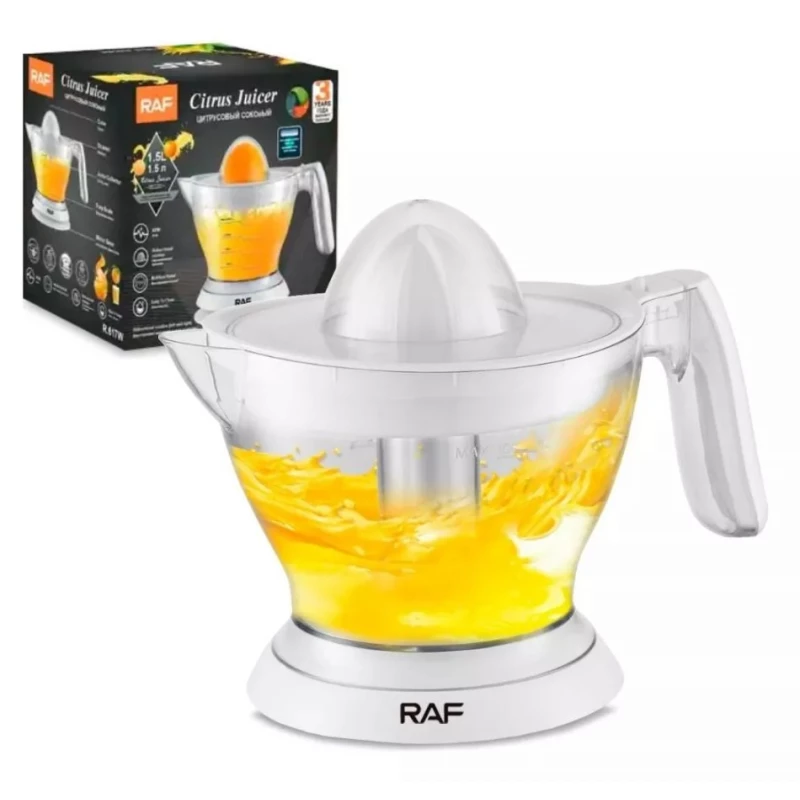 RAF R.617G عصارة الحمضيات هي عصارة حمضيات كهربائية عملية ومريحة مصممة لعصر الفواكه الحمضية مثل البرتقال، الليمون والجريب فروت بسهولة وسرعة. تعمل تلقائيًا عند الضغط على الفاكهة دون الحاجة لضبط إعدادات معقدة، مما يجعلها خيارًا ممتازًا للاستخدام المنزلي اليومي.